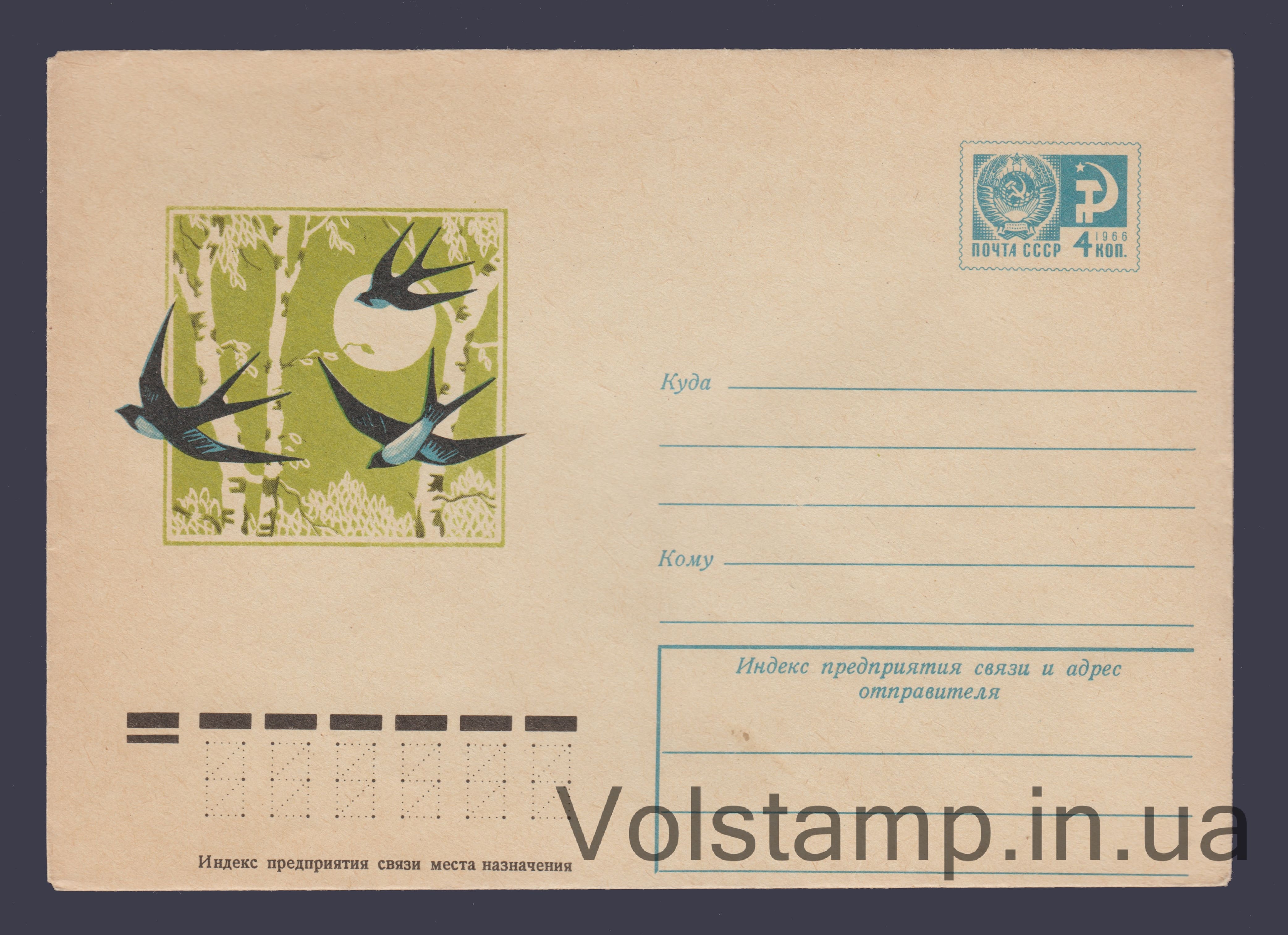 Name: Postal Stationery Envelope (Swallows against a background of birches) №9421Quality: Excellent