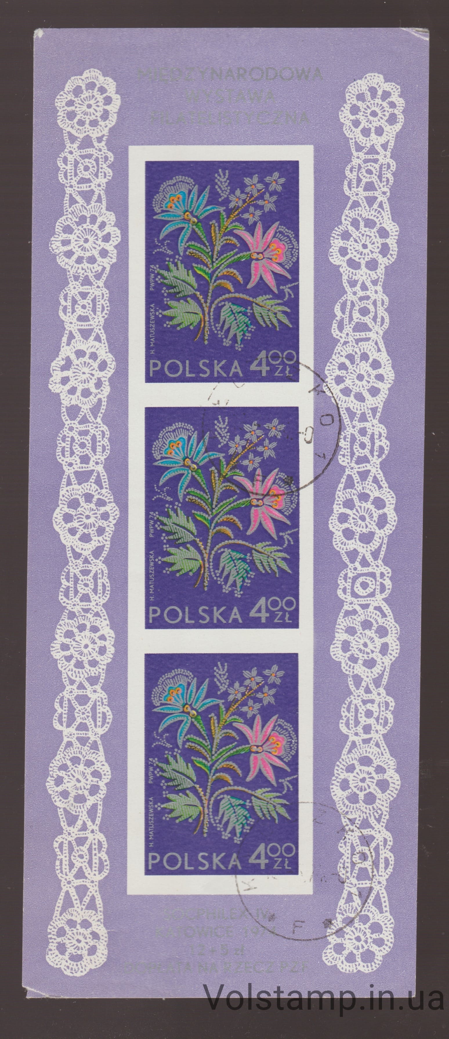 Name: Poland Block (Embroidery, plants, flora) Used №BL92Quality: Extinguished stamp