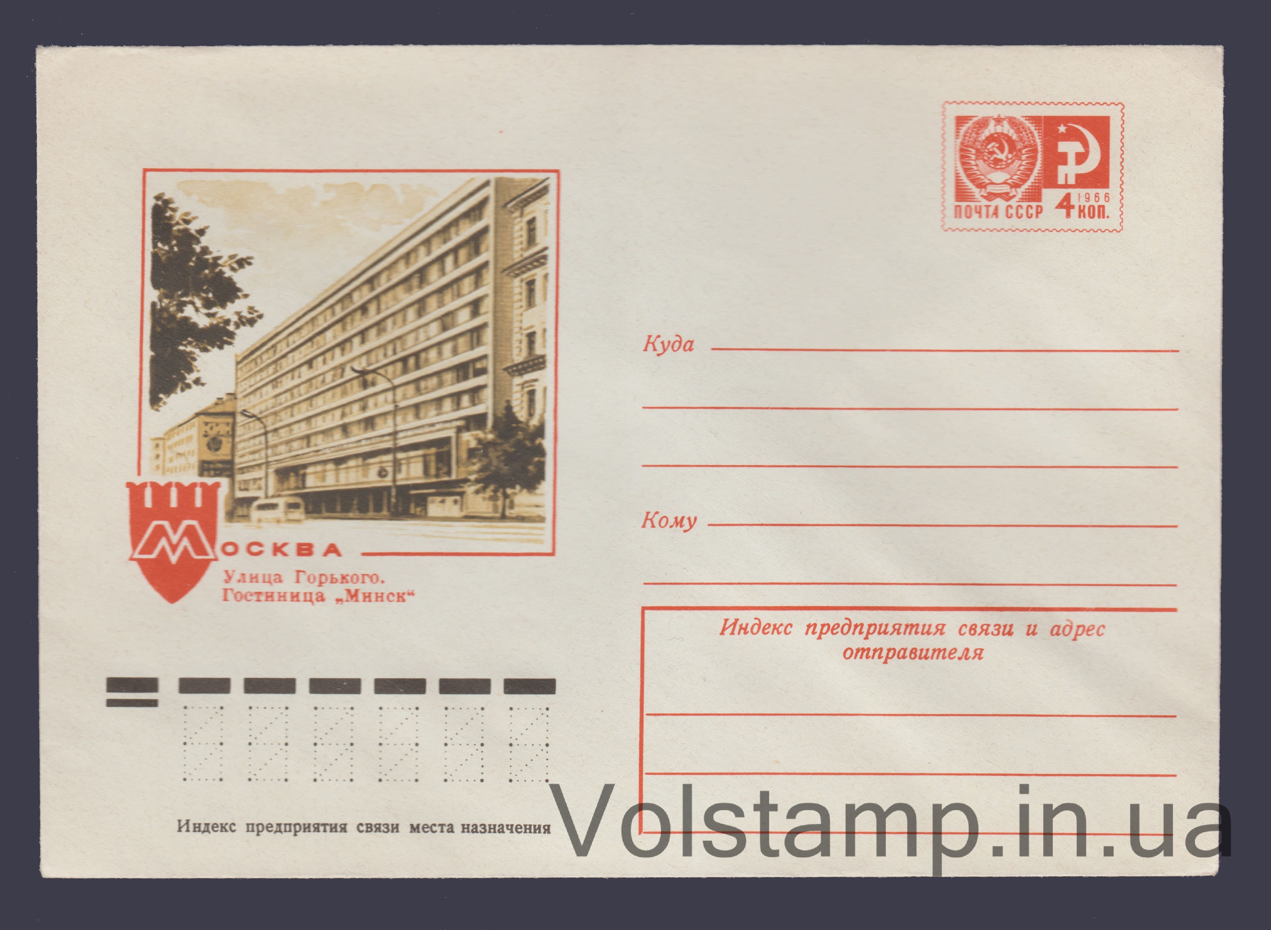 Name: Postal Stationery Envelope (Moscow. Gorky Street, Minsk Hotel) №11042Quality: Excellent