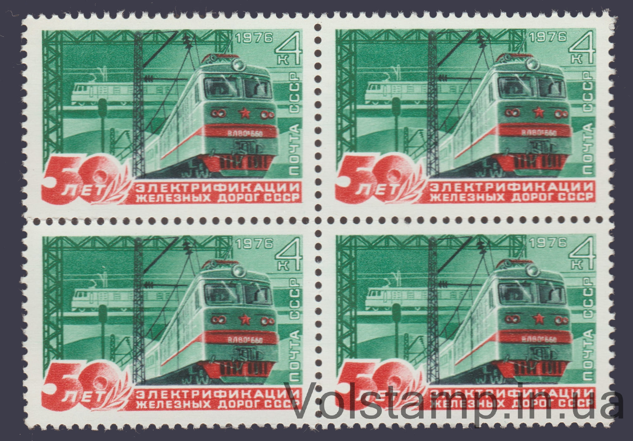 Name: Quartet block 50th Anniversary of the Electrification of USSR Railways №4534Quality: Pure stamp (MNH)