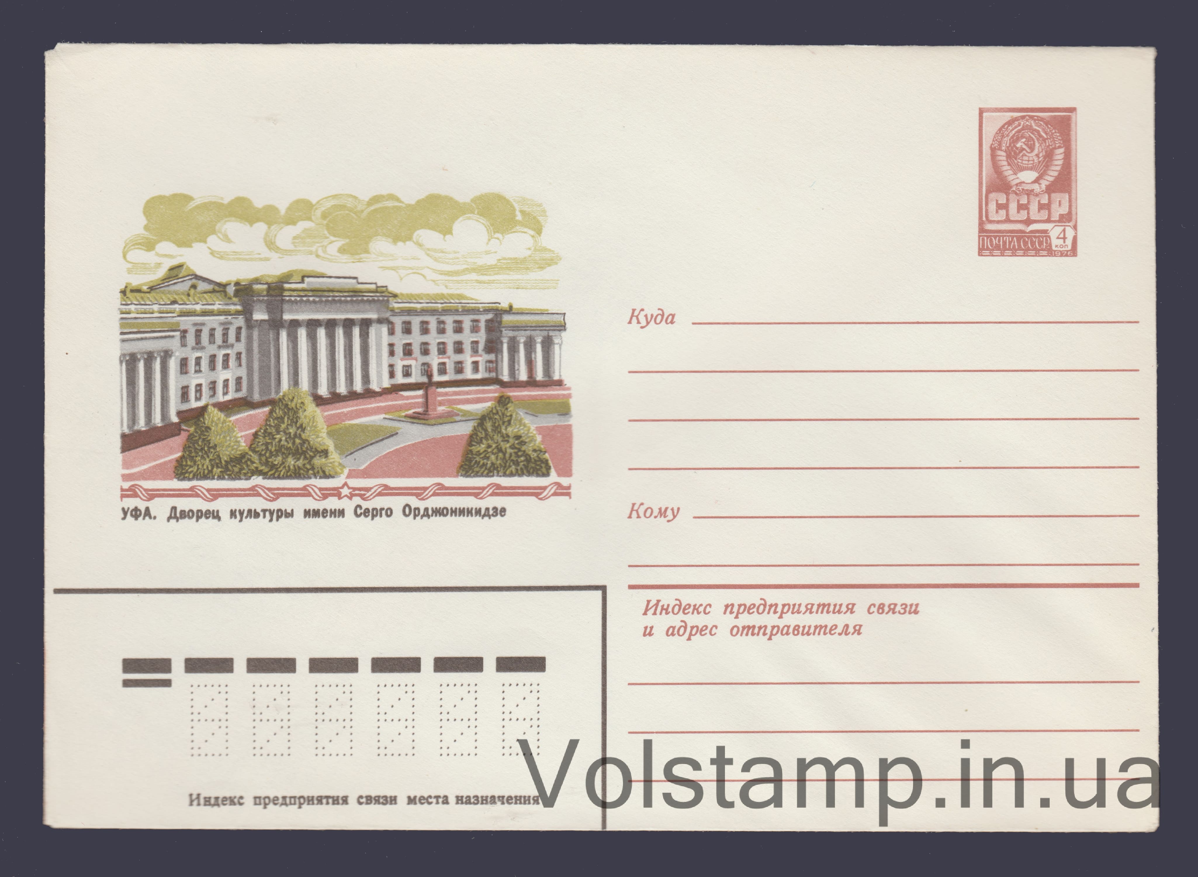 Name: Postal Stationery Envelope (Ufa. Sergo Ordzhonikidze Palace of Culture) №14440Quality: Excellent
