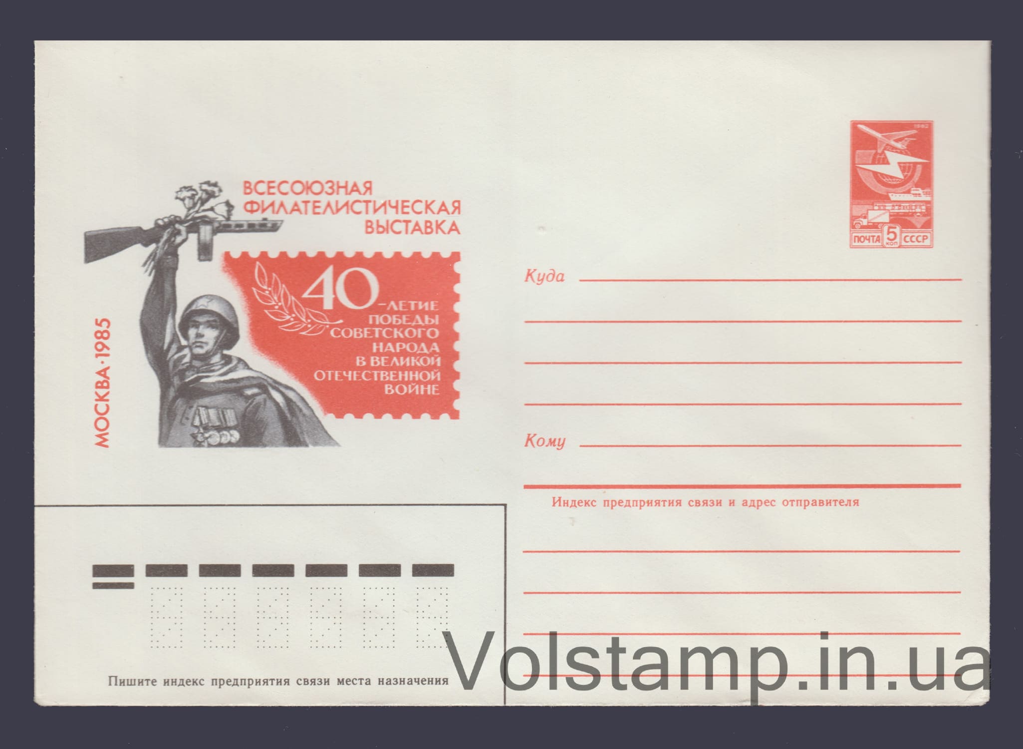 Name: Postal Stationery Envelope (Philological Exhibition: 40 Years of Victory) №38Quality: Excellent
