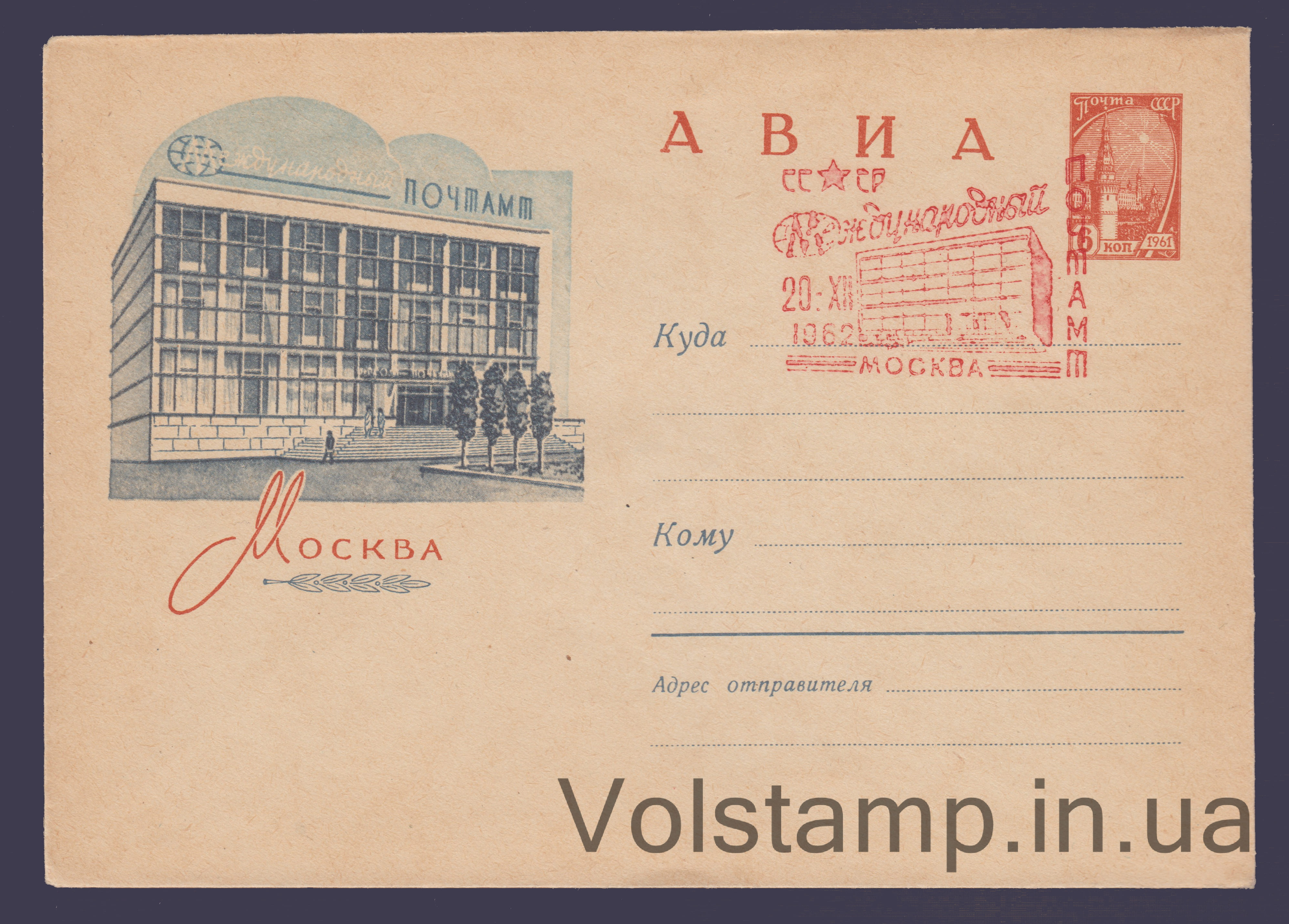 1962 ХМК (Авиа. Москва. Международный почтамп) Специальное гашение №2197