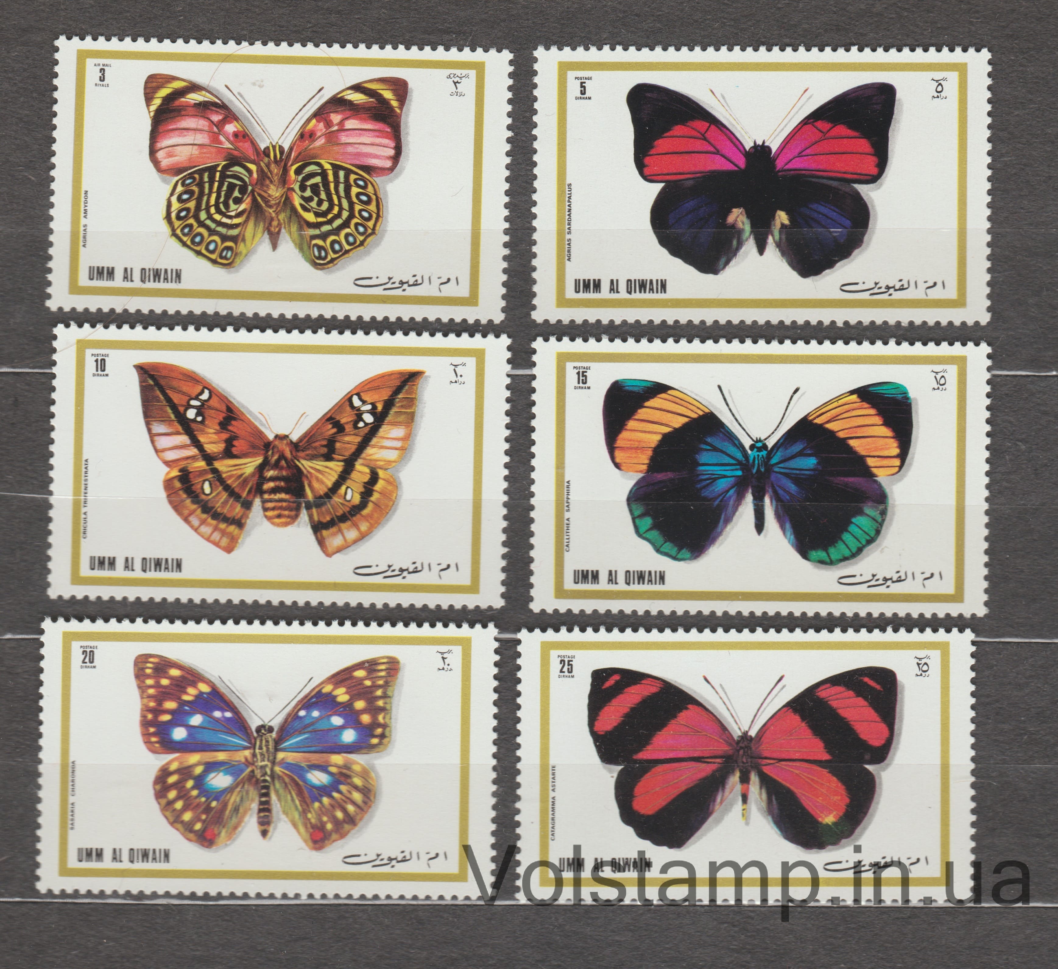 Название: Умм аль-Кувейн Серия марок (Бабочки) MNH №623-628Качество: Чистая марка (MNH)