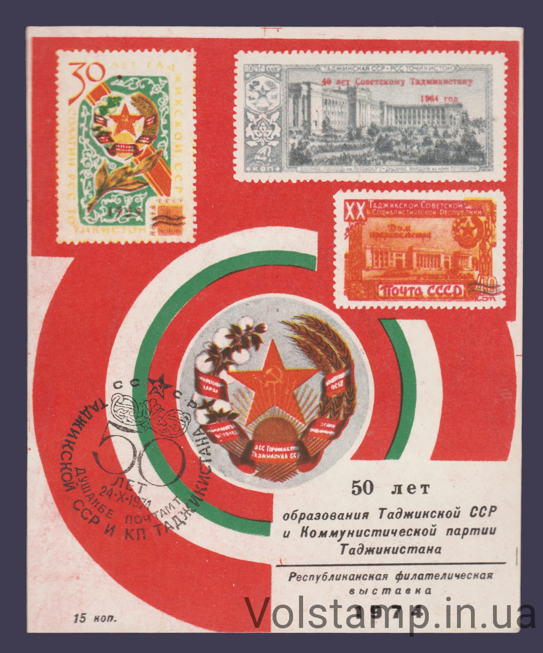 1974 Сувенирный лист Душанбе (Звезда Красная, штемпель)