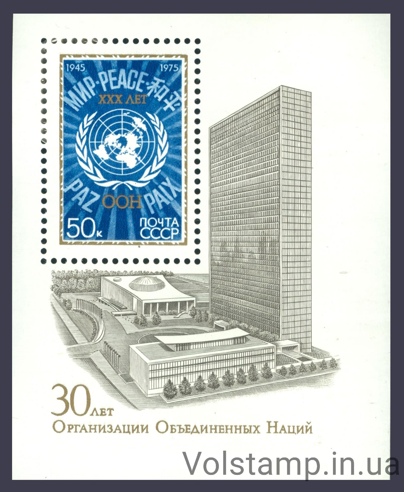 Серия: ООН (ООН), 30 летКод по каталогy: Mi:SU BL104, Sn:SU 4336, Yt:SU BF103, Sg:SU MS4408, Zag:SU BL107