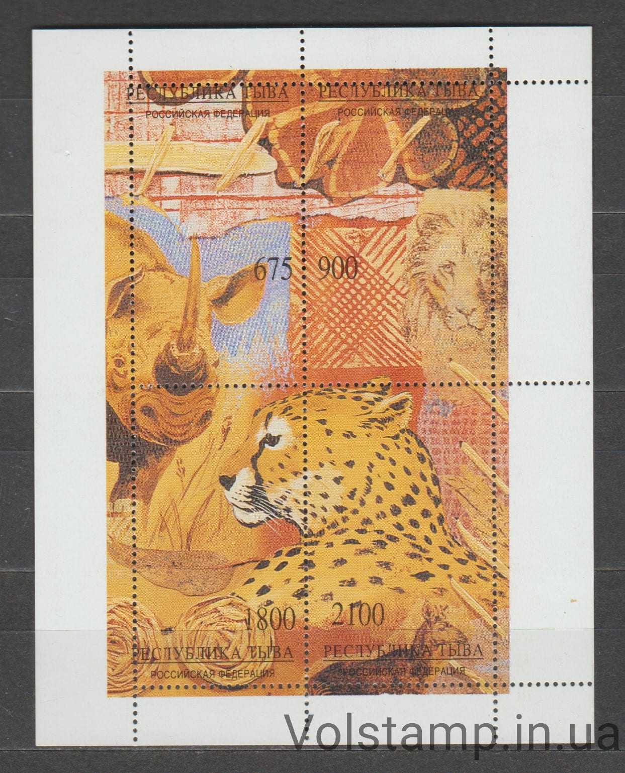 Название: Россия, Тува: Незаконные марки блок (Фауна, дикие кошки)Качество: Чистая марка (MNH)