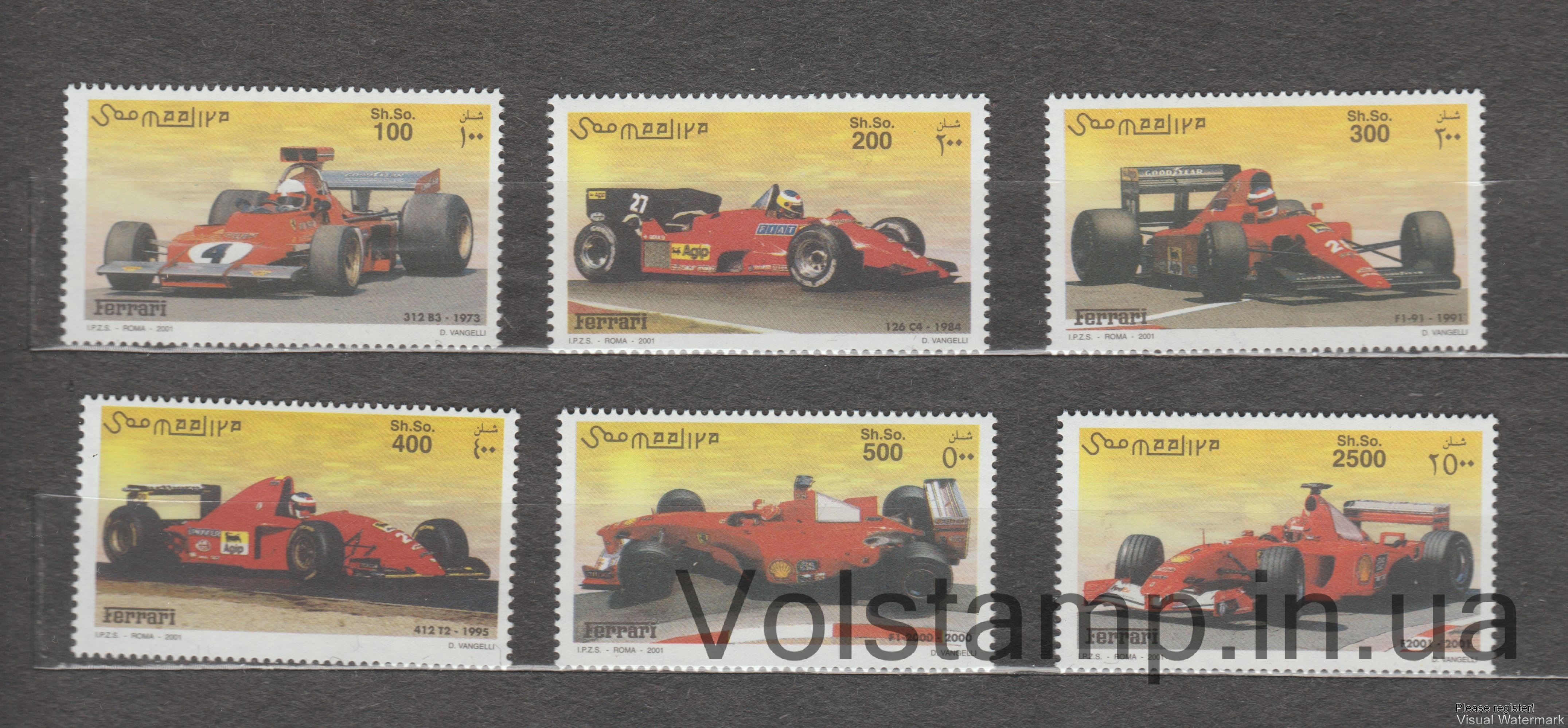 2001 Сомали Серия марок (Гоночные автомобили Ferrari) MNH №890-895