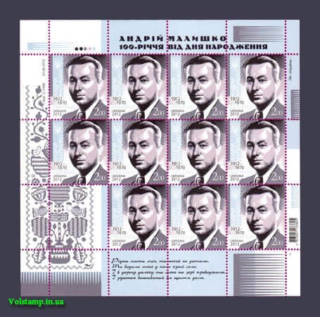 Название: Лист Андрей МалышкоКачество: Чистая марка (MNH)
