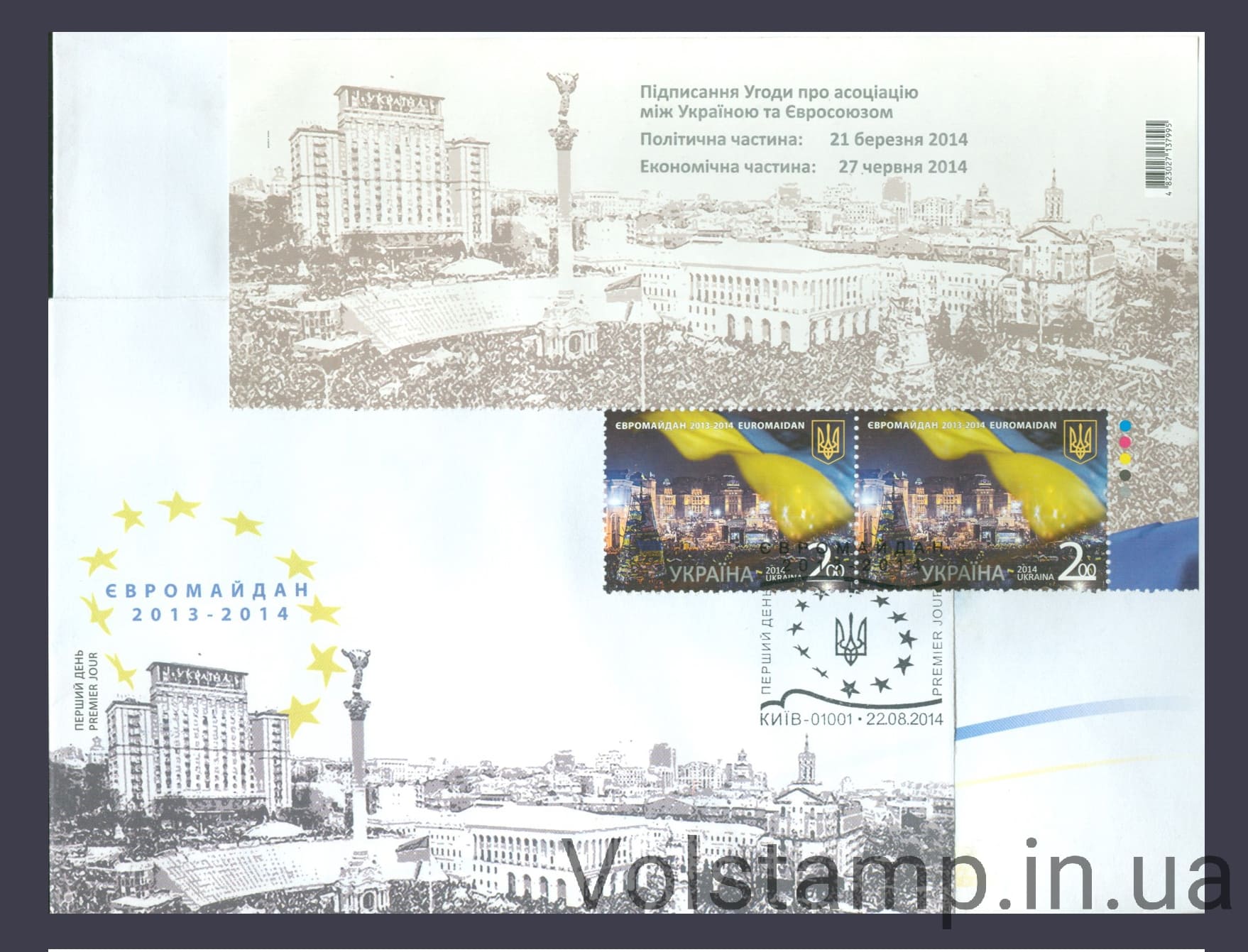 Назва: КПД Євромайдан на 2 конвертах з полем №1383Якість: Чиста марка (MNH)